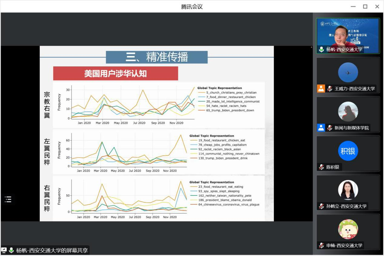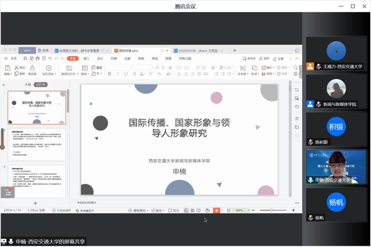 问道·学术工作坊线上开展第10期讲座,副教授申楠、助理教授杨帆、助理教授王威力三位青年教师围绕“新时代的国际传播:理论探索与实证研究”主题进行分享交流,有爱爱