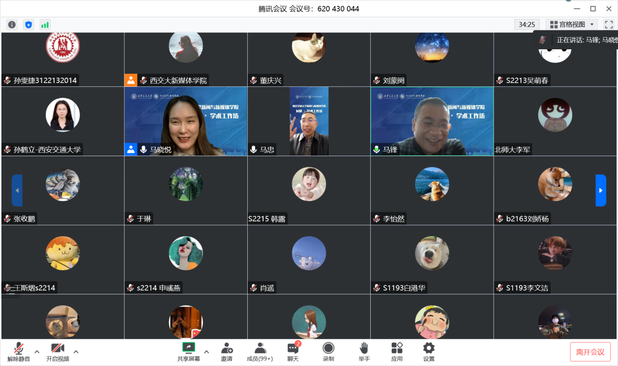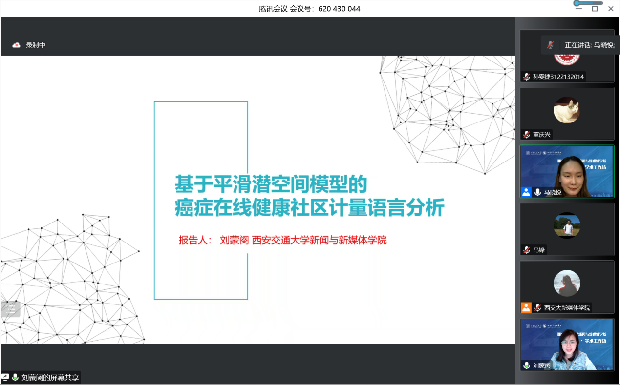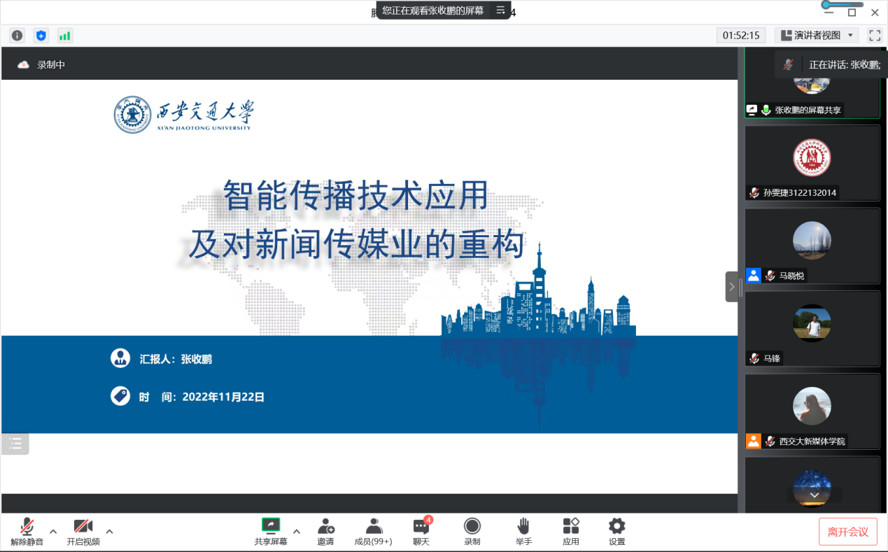 副教授刘蒙阕、高级工程师张收鹏三位青年教师进行分享,西北大学新闻传播学院院长马锋教授作为嘉宾点评,有爱爱