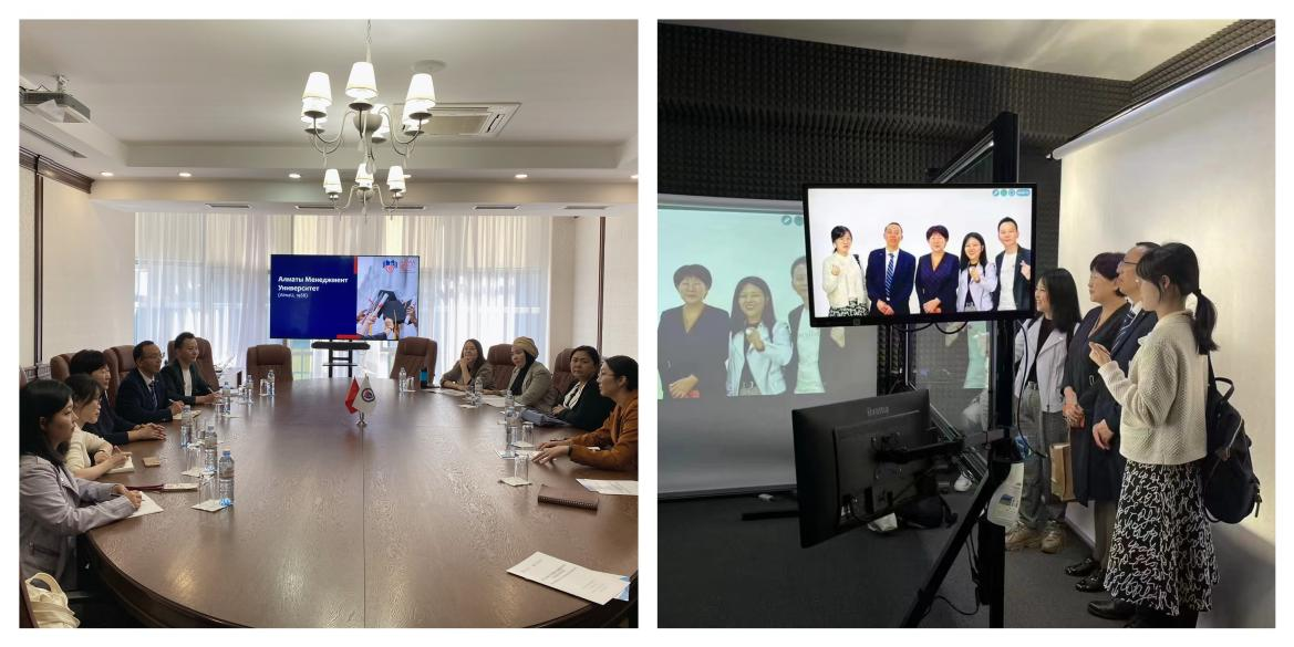 访问阿拉木图管理大学媒体与电影学院期间,访问团参观了学校图书馆、实验室和远程在线教育中心。阿拉木图管理大学媒体与电影学院院长塞克耶娃·阿娜拉·马拉托芙娜和国际合作部主任基亚什·努尔苏鲁·辛塔索维纳等表示,非常欢迎西安交大有爱爱