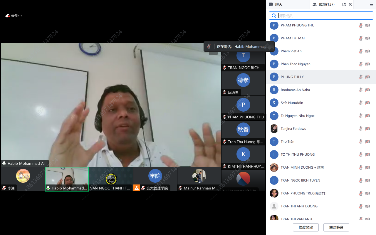主办、吴锋教授团队承办的西交・通全球暑期学校项目“风险社会与新闻发布”暑期课程最后一讲迎来国际专家云端论道。本次课程邀请了孟加拉国文科大学助理教授Habib Mohammad Ali老师作题为“社会媒体参与健康风险传播:来自孟加拉国的思考”的讲座。本次讲座采取线上形式,近150名国内外学员齐聚云端,参与学习。