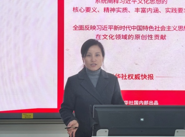 2024年12月5日下午,新媒体系党支部召开组织生活会,刘焕副教授领学《习近平文化思想学习纲要》。新媒体系党支部书记牛耀红主持会议,全系教师党员和博士生党员参加会议。