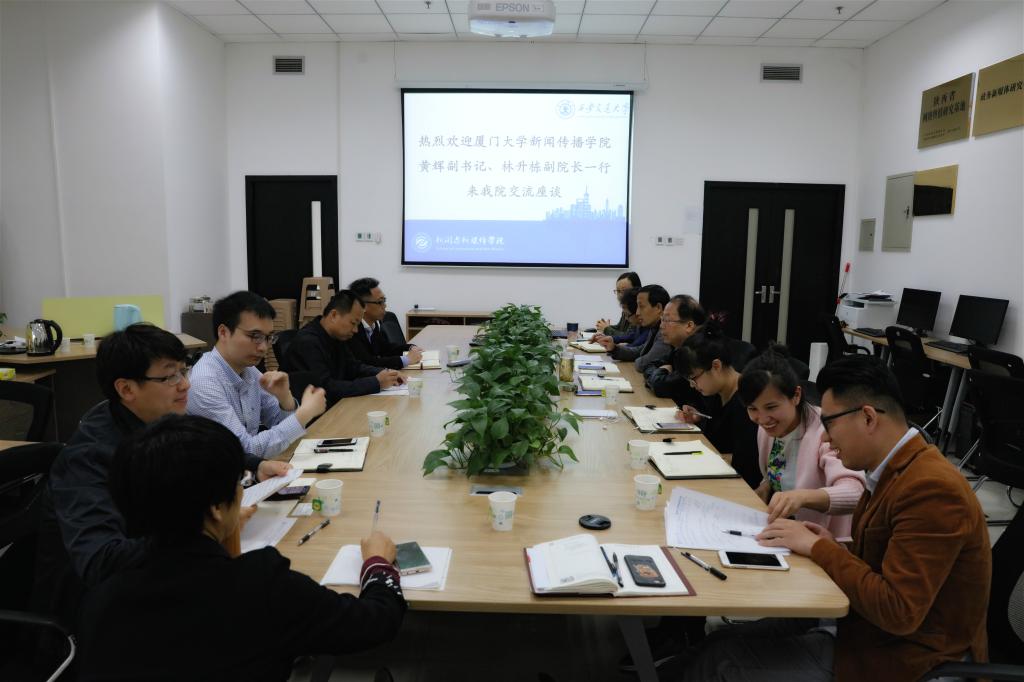 2018年4月23日上午,厦门大学新闻传播学院黄辉书记、林升栋副院长一行来访,就学院党建思政、学生培养、促进马克思主义新闻观教研等方面进行交流。