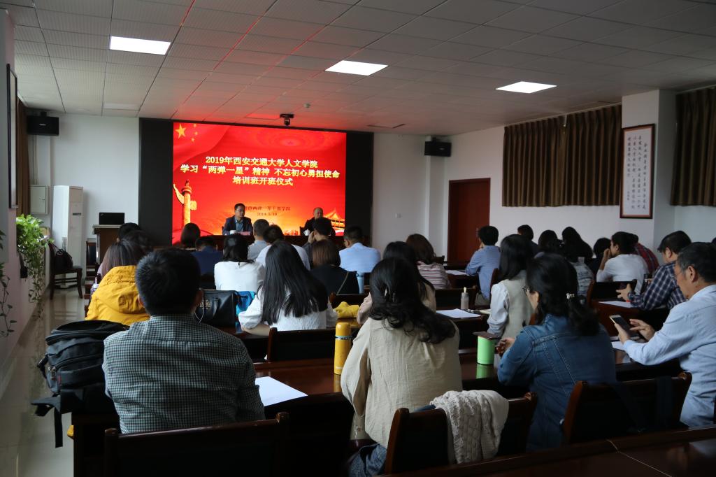 在开班仪式上,两弹一星干部学院黄毅主任介绍了两弹一星干部学院发展历史和教学成果,勉励学员认真学习“两弹一星”精神。人文学院党委副书记王劲强调,“两弹一星”精神和西迁精神都属于中国共产党的精神谱系,都是共产党员的宝贵精神财富,参训师生应当将“两弹一星”精神和西迁精神紧密结合起来,从而增强“四个意识”和“四个自信”,为创新港的发展贡献力量。