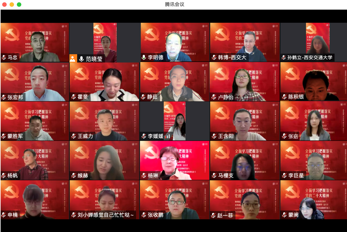 党总支线上组织召开学习党的二十大报告心得分享会,学院全体教职工参加,党总支副书记韩博主持会议。