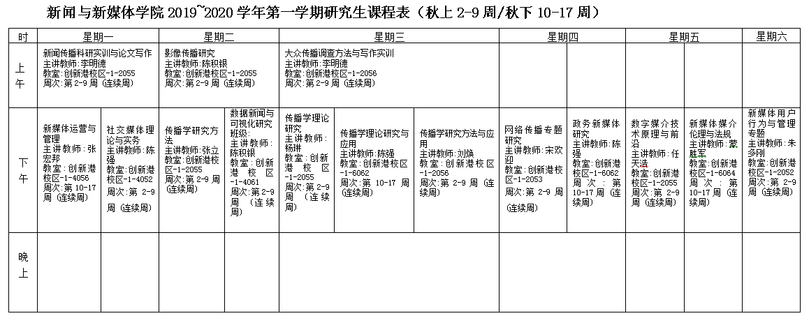 有爱爱 2019~2020学年第一学期研究生课程表