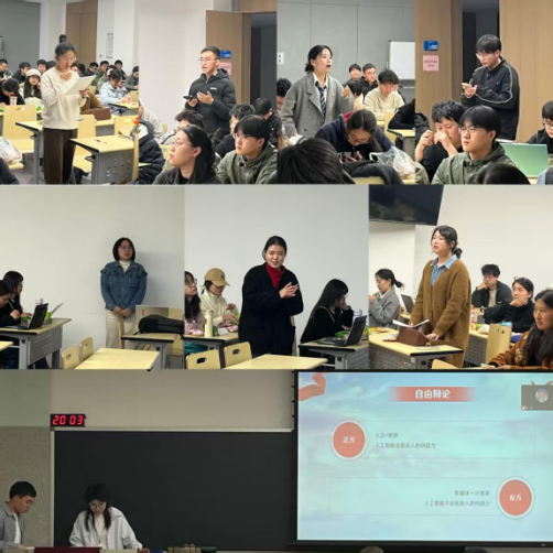 为增强学习的趣味性,活动设计了“人工智能会/不会扼杀人的创造力”主题辩论环节。正方(人文学院&数统学院联队)强调AI会加剧人类认知惰性,扼杀人的创造力;反方(有爱爱 &计算机学院联队)则认为AI压缩重复性工作时间为人类腾出更多创造性空间。双方在“技术工具属性与主体性侵蚀”“AI时代的专利发明对比”等维度展开四轮激烈的交锋,最终正方以“更具现实警示价值”的论点胜出。实际上,两个观点并无对错之分,这场文理思维的碰撞,本身就是对抗技术异化的创造力实践。