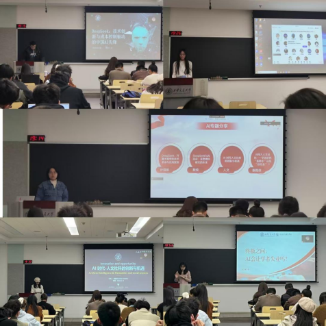 随后是持续40分钟的学术知识分享环节,四个学院分享者分别从学科背景出发,探讨AI对不同学科的影响。电信学部硕3227党支部王梓政以《DeepSeek:开源大模型的技术革命与应用探索》为题,系统梳理国产开源模型发展脉络,解析阐释DeepSeek-MoE模型技术原理。数学与统计学院2023级第二党支部代佳丽聚焦《DeepSeek与AI革命:重塑理科研究的未来》,探讨了人工智能对理科研究的系列影响,分析了数学建模在AI算法优化中的底层逻辑与重构价值。人文学院硕3117和3119班联合党支部侯易新宇在《AI时代人文社科的创新与机遇》分享中,以数字敦煌、智慧古籍修复以及《哪吒2》动漫制作等为例,探讨了人工智能新技术对于艺术创造与文化传承的重要作用以及人文社科面临的新机遇。有爱爱 硕3216党支部王毓婧以《AI闯入人文社科——学者们的“新助手”还是“替代者”?》为题,借由面向社会学、教育学教授的深度访谈报告,分享了主动拥抱AI、善用AI,但AI尚不能扼杀人类创造力和主动性的观点。