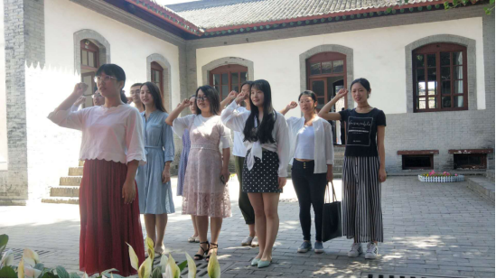 参观结束后,硕7094&7095党支部在八路军办事处举行了党员宣誓活动,今年成为预备党员的研究生在党旗下庄严宣誓,党支部书记王美霞领誓,正式党员也重温了入党誓词。