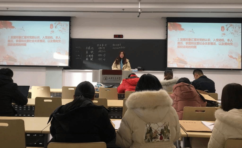 会议开始,硕9178班马晨红、孟欣、王明希和温旋同志分别从个人对党的认识、个人履历、入党动机和主要社会关系等方面做出个人陈述。她们在为期一年的培养期内,表现良好,学习刻苦,为人热情,团结同学,积极参与党支部各项活动。随后,8位入党介绍人分别对积极分子一年来的学习、思想、工作情况做细致汇报,党支部委员对四位同志的审查情况做汇报,最后党组织成员一致认为四位同志符合转为预备党员的条件,最终四人均以全票通过预备党员的评选。