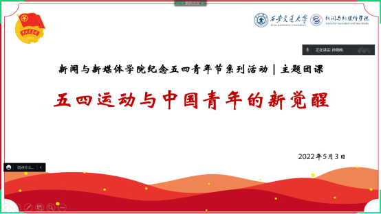 团工委副书记孙艳婷老师带领学院同学们学习了主题团课《五四运动与中国青年的新觉醒》。回顾了五四运动的历史背景、主要经过、结果意义和五四运动后涌现出的一大批忧国忧民、勇于创新的栋梁之材,他们宣传新思潮、新文化,他们积极探索救国道路,他们以赤子之心回应了时代之问。