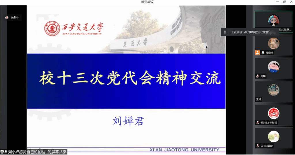刘婵君谈到学校第十三次党代会是一次总结过去、展望未来的誓师大会,通过学习相关文件,我们详细了解到学校过去几年的扎实成绩:在西迁精神的指引下,交大人充分发挥吃苦耐劳、敢想敢做的精神,坚持贯彻落实党中央的决策部署,在思想文化建设、组织建设、干部队伍建设等方面都取得了突破进展,世界一流大学建设取得新成就,在文化软实力和发展硬实力上持续提升。我们也充分明确了,未来交大发展的宏伟目标:到2035年达到世界一流大学中上水平、到2050年跻身世界一流大学前列。为此,我们每一个交大人都要勇担使命、敢为人先,唯有每一个交大人一点一滴的小努力,才能最终共创整个交大一步一步的大辉煌!