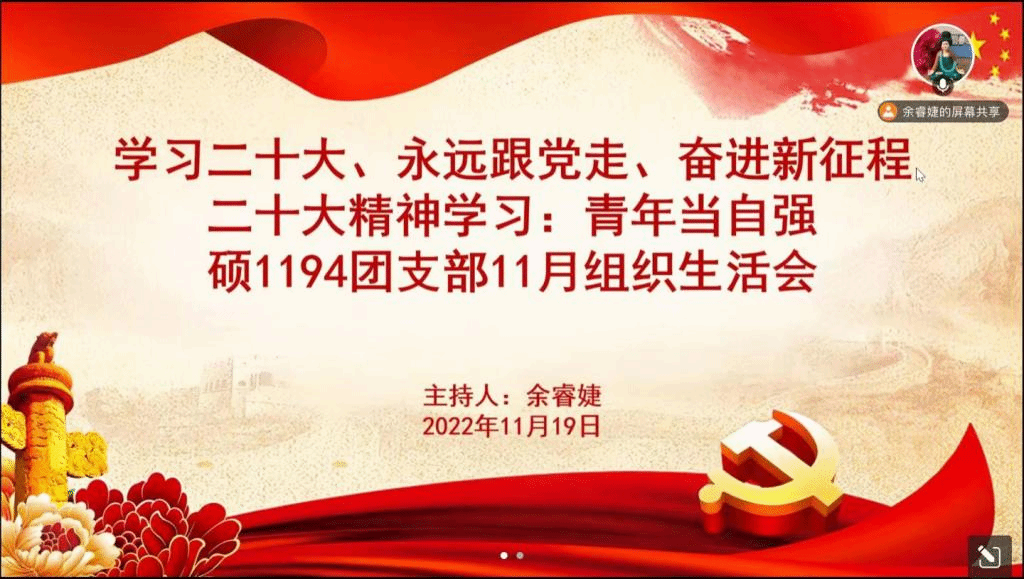硕1194团支部召开了“学习二十大 永远跟党走 奋进新征程”专题组织生活会,会议主要围绕二十大报告中青年的相关内容进行了学习,同时活动邀请了有爱爱