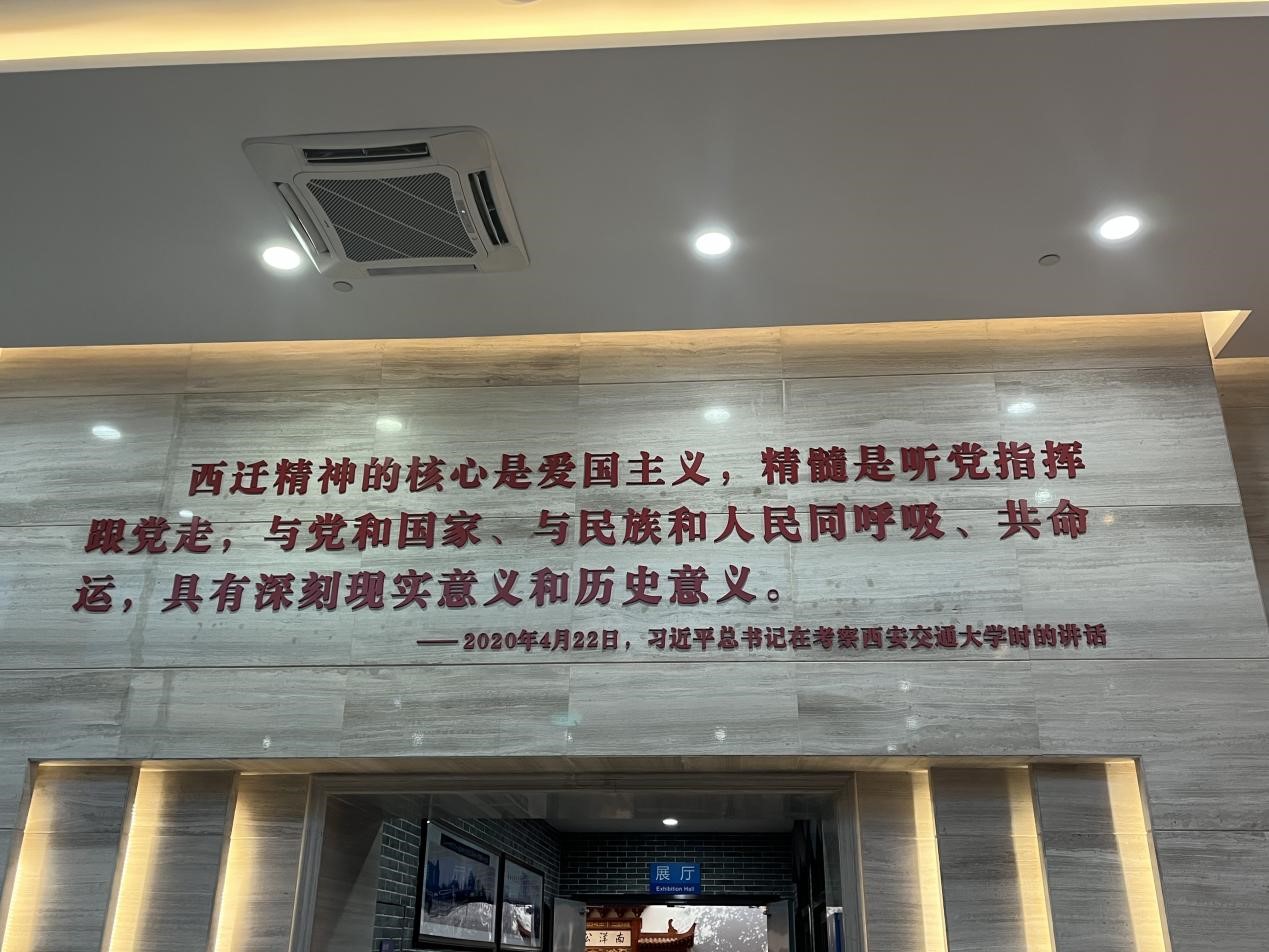 交大西迁博物馆共有三层,从低到高,分别对应了“溯源”、“西迁”和“致远”三部分。同学们随着时间线追溯交大历史,学习感受西迁精神。漫步在西迁博物馆的各个展厅,同学们不仅了解到了交通大学名字由来及发展历程、交大办学初期的主要学科分布和校园文化,还对“胸怀大局,无私奉献,弘扬传统,艰苦创业”的西迁精神有了更加深入的理解。