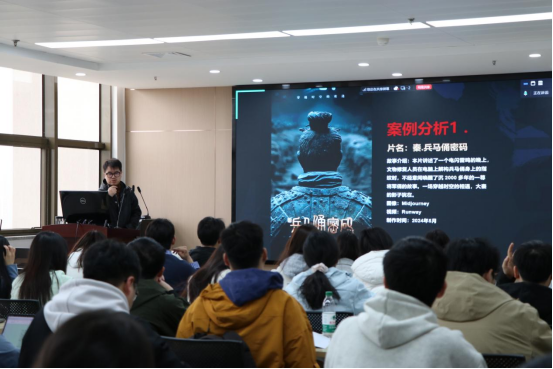 随后,西安太和影像文化传媒有限公司总经理岳宏斌带来了首场授课,他以自己在影视行业的丰富经历和感悟,结合AIGC短片《秦·兵马俑密码》和AIGC纪录片《大汉张骞》,深入剖析了AI技术在影视创作中的应用。他强调人和技术间的和谐,指出审美素养与技术赋能相结合的重要性。“怎么运用AI技术讲好我们的中国故事,必须得有好的审美,中国式的审美如果再有AI的赋能,我相信大家一定能做出很好的故事。”