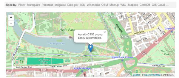 Leaflet是为移动端友好型交互地图所做的开源JavaScript库,其中包含了大部分在线地图开发人员都需要的所有特征。Leaflet被设计为简单易用、性能优良的工具。归功于HTML5和CSS3,它得以支持所有主流电脑和移动平台。如果你还想扩展这个app,有大量可供选择的插件能安装。