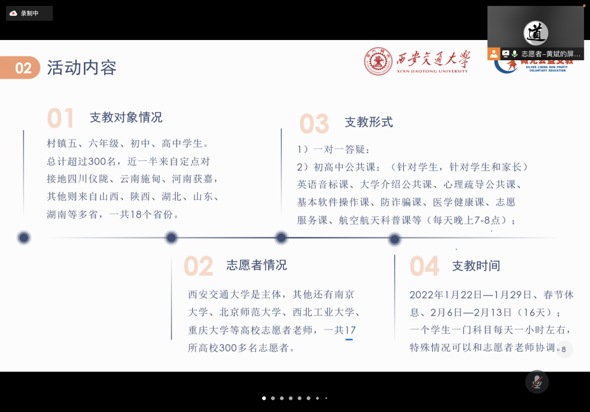 献礼建团百年,贡献青年力量,第三期“微光”公益线上支教活动于2022年1月22日正式启动。此次活动由有爱爱