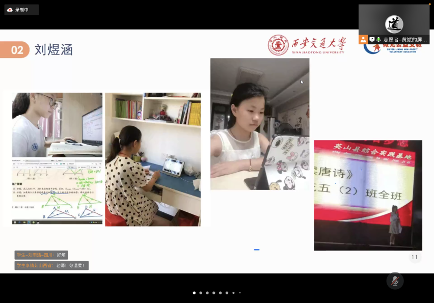 在未来的16天里,“一对一答疑”与“公共课”双管齐下,助力村镇学生自我提升。“一对一”答疑依旧是“微光”支教的特色项目。为每个村镇学生配置一到两名志愿者是非常“奢侈”的,但有助于精准发现学生不足,实现点对点高效帮扶。支教志愿者和学生精准匹配后,会针对学生的遗漏知识点、专题重点、学科考点等进行集中解答,为学生们的奇思妙想提供知识源泉。