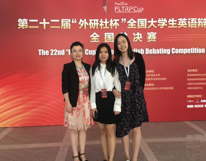 66日至10日,第二十二届“外研社杯”全国大学生英语辩论赛全国总决赛在北京航空航天大学举行。我院2016级本科生黄诗锐同学、人文社会科学学院2016级张永怡同学组成的代表队,在外国语学院指导老师吉乐的带领下,取得一等奖的优异成绩。