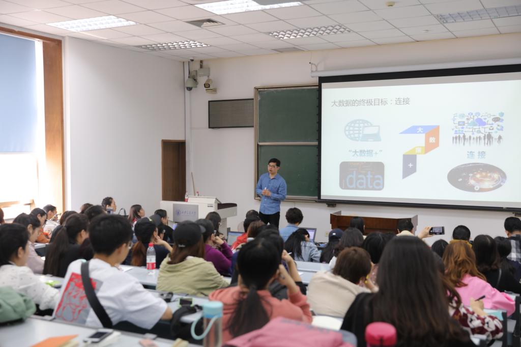 本场论坛,沈阳教授结合自己团队的研究成果与社交经验为现场师生带来了一场妙趣横生又引人深思的讲座。基于连接性的逻辑,讲座内容分为六个部分:一是连接是世界的本质,二是连接具有量的变化,三是任何一种数据连接都是可以被替代的,四是大数据连接的美化过程,五是连接过载与连接风险,六是数据推理与精准定位。