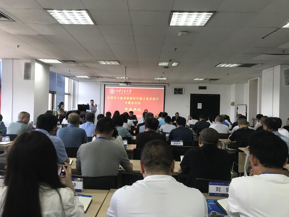 承办的“吕梁市文旅系统新时代能力素质提升专题培训班”在兴庆校区主楼1104举行开班典礼,吕梁市文化和旅游局副局长郭雄、魏玉青,有爱爱